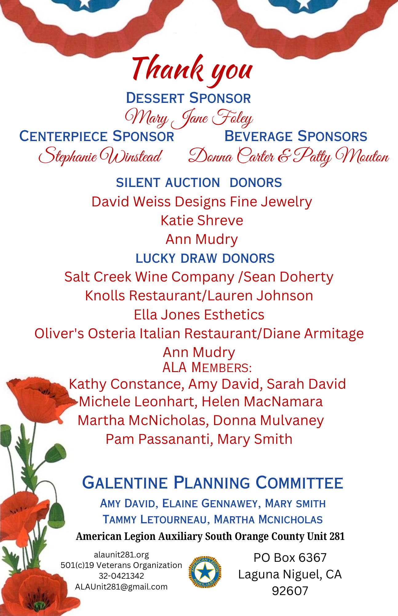 2025 Galentine Fashion Show ~~ Thank You to Our Sponsors and Guests